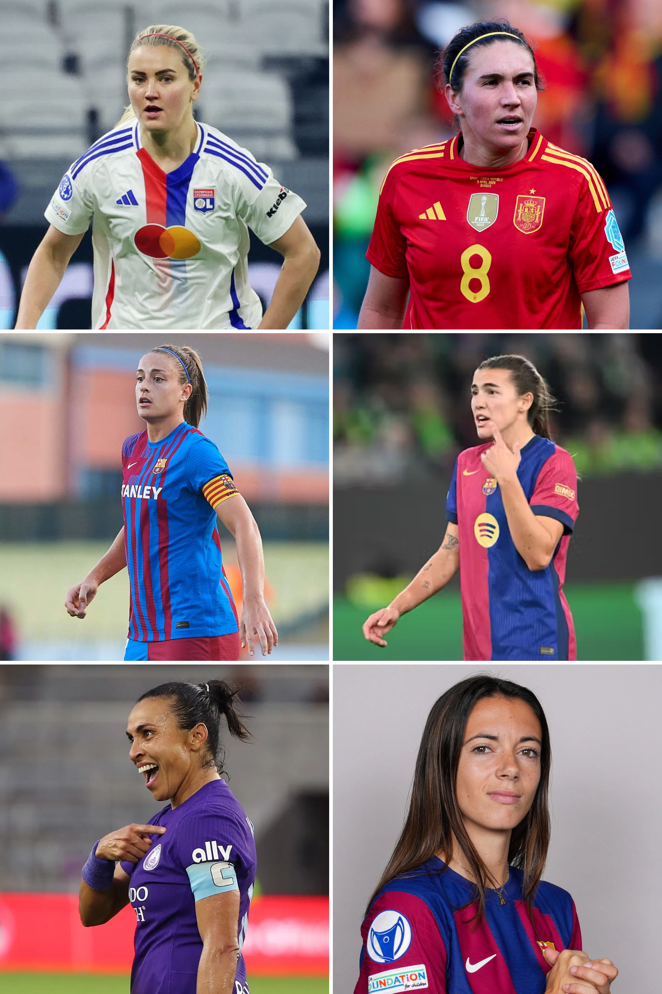 Picture : Heaps, Caldentey, Putellas, Guijarro, Marta, Bonmati - 6 candidates to succeed Aitana Bonmati, winner of the IFFHS Awards 2023 and 2024.